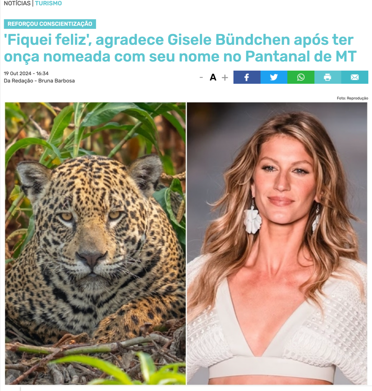 And when the real Gisele Bündchen heard the story, she shared it on her Instagram and told G1 Globo she was “feliz pela homenagem”—honored by the tribute—and expressed her love for the wild places of Brazil.