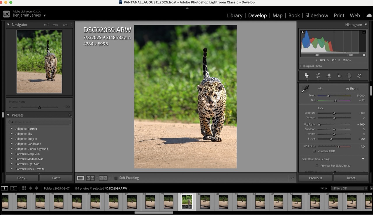 In this guide, I share my complete Lightroom workflow for editing wildlife photos, the same process I use on Jaguar Safaris in the Pantanal. Too many photographers spend thousands on trips and gear, only to ruin their shots with heavy-handed edits. My approach is built on one principle: subtlety.